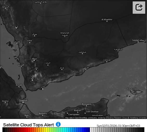 وأشار مراقبون للطقس إلى أن هذه السحب تأتي بالتزامن مع توقعات بانخفاض ملموس في درجات الحرارة خلال ساعات الليل لا سيما في محافظة حضرموت التي قد تلامس درجات الحرارة السطحية في بعض مناطقها الصفر المئوي ودرجة واحدة فوق الصفر.